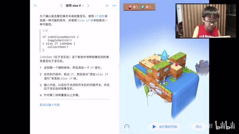 与少儿编程大多从Scratch开始起步,周花卷选择了Apple Swift。2014年,苹果在WWDC(苹果开发者大会)上发布这一新语言,两年后学习平台Swift Playgrounds也面市。它不要求玩家的知识储备,先从闯关解谜开始,掌握Swift基础内容后,再向高级别进阶。周花卷认为,Swift Playgrounds需要编写真正的代码,学习门槛比Scratch高,但上手并不难,学习过程就像通关游戏一样,适合初学者。