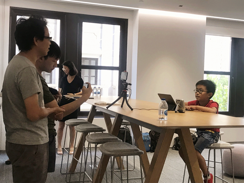 三点半放学后,小学二年级的Vita从上海闵行匆匆赶到位于浦东区的一幢大厦,这位编程小网红将在这里录制他的新一期视频。一起来的还有他爸爸周花卷。