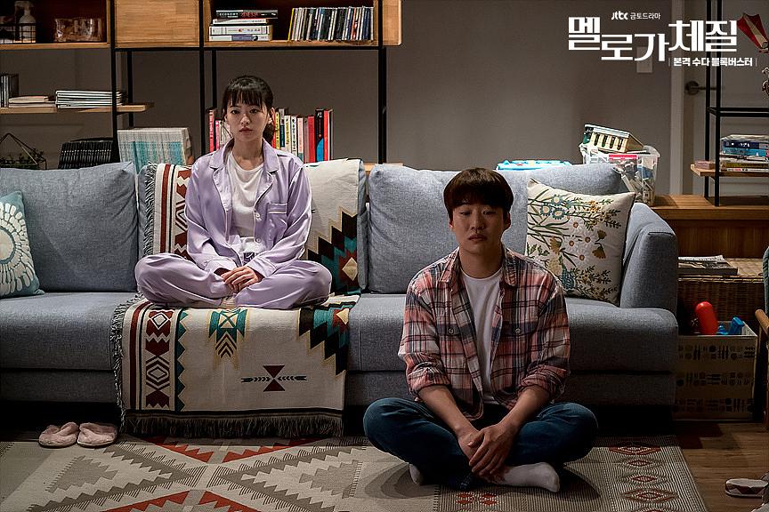 如果按照剧中导演的定位,《浪漫的体质》可以算作一部情景喜剧,无厘头的笑料常常让人哭笑不得。第一集,寒珠的老公抛弃她时理直气壮地回应,你的幸福为什么要问我呢?心酸又好笑。在郑编剧以前辈姿态给出意见时,范秀捂住了耳朵,夸张地表演不听不听,堪称本剧第一名场面。不得不提的还有和导演沟通剧本时,真珠一言不合就抱着吉他开唱的场景。