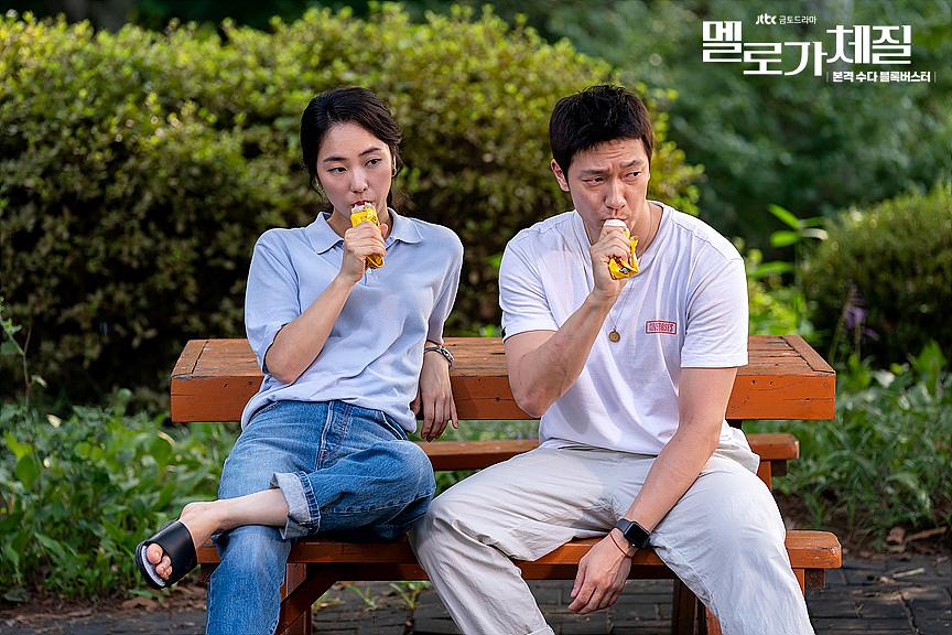 广告导演这个角色第10集才出现,冷静的面孔和他讲的冷笑话相得益彰。他和纪录片导演恩静这一对儿成为很多人的心头好。两人都属于面冷心热的类型,感情线还在风轻云淡的阶段。我怀疑导演发扮鬼脸的照片给恩静并非是真发错了,而是看出了恩静的心事,想要逗她开心,最后一集他们一起喝酒,终于聊起恩静尘封内心的伤痛,但观众不会觉得沉重,“想着你的眼眸干杯”,他用《卡萨布兰卡》里的台词再次演绎了一个冷笑话。