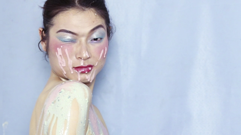 有时候灵感来得很突然,看到一张照片、一份海报、一个建筑物,我都会从里面汲取到有趣的元素。比如在路上看到一个融化很久的棒棒糖,色彩和质地吸引了我,我就觉得是不是可以化一个这样的妆?再走段路,手里拿的冰淇淋掉在地上,忽然想法就来了,要不我就化一个不那么精致的、像融化糖果的那种妆呢?