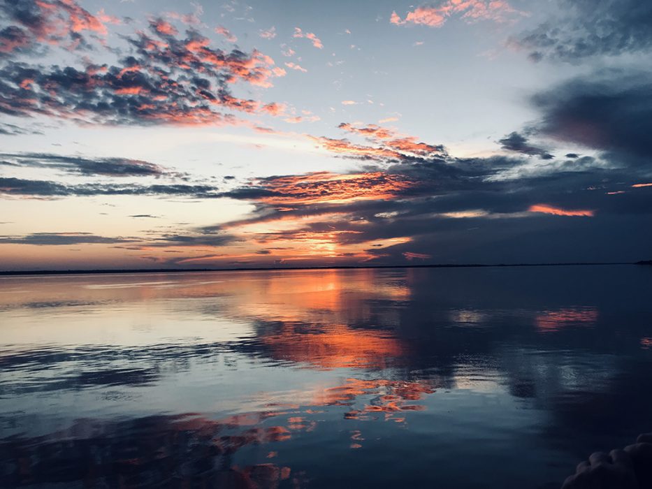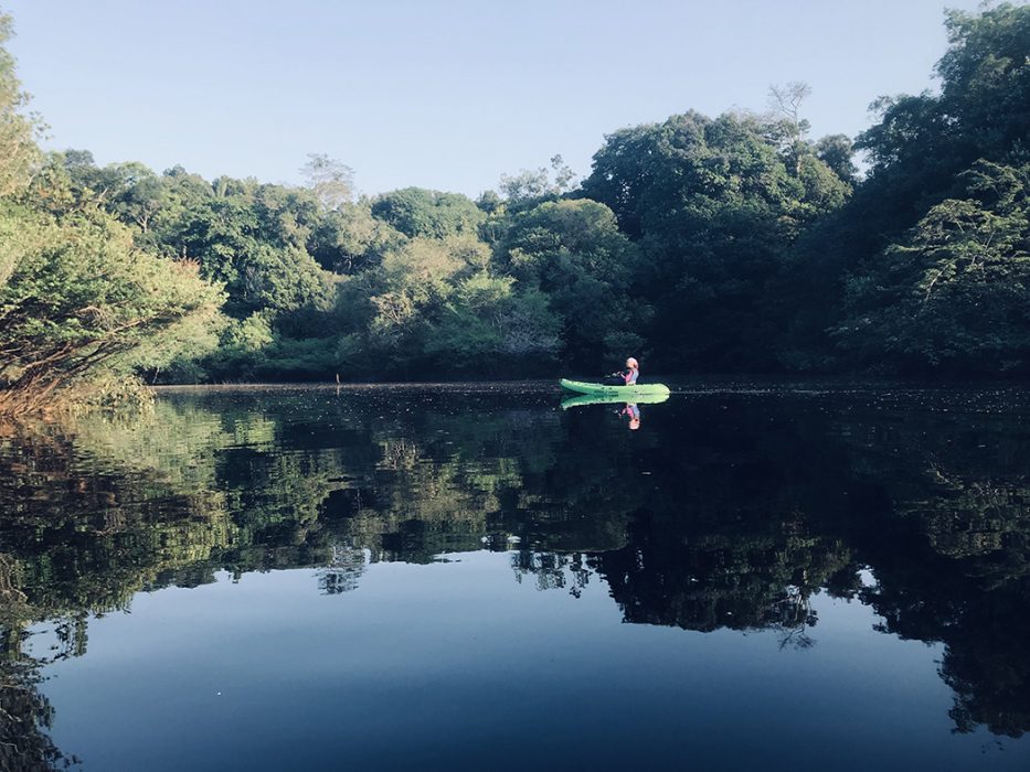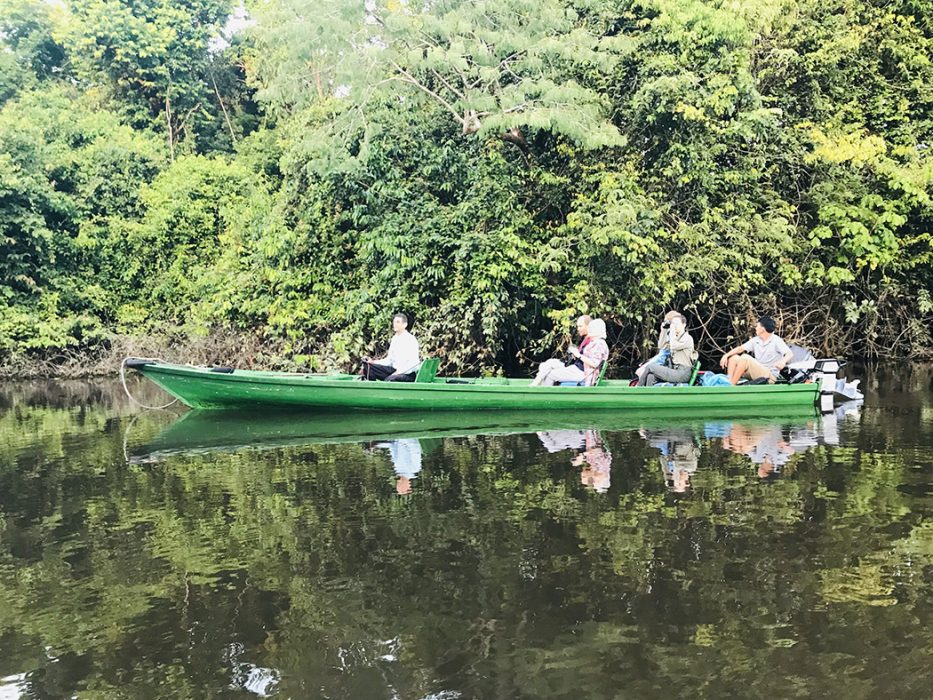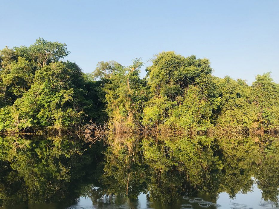一艘三层夹板的游船缓缓地穿过里约内格罗平静的水流,这是亚马孙河的一条支流,也是地球上最原始、最多样的生态系统之一。天气好的时候,里约内格罗的河水是恬静的,即使船停了下来,河中的倒影也不会散乱。当机动小汽艇驶离小船,前去探访雨林和它的居民时,水波荡漾得非常轻微——不一会儿,水面又恢复了平静。