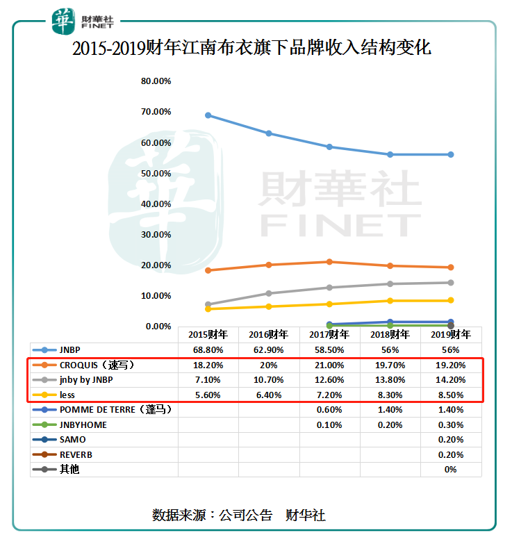 净利增速高于营收增速,这主要受公司高毛利率的成长品牌包括CRORQUIS(速写)、jnby by JNBP、less的销售规模不断增长驱动所致,这也反映出公司的成长品牌的市场认可度正不断提升。