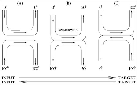 神经热交换器 (Neural Heat Exchanger) 是一种用于深度多层神经网络的监督学习方法。它的灵感来自物理热交换器。输入 “加热”,同时通过许多连续的层进行转换,目标从深层管道的另一端进入并 “冷却”。与反向传播不同,该方法完全是局部的。这使得它的并行实现变得微不足道。自 1990 年以来,它是在各大学的不定期演讲中首次提出的,与亥姆霍兹机器 (Helmholtz Machine) 关系密切。同样,实验是由我的学生 Sepp Hochreiter 进行的。