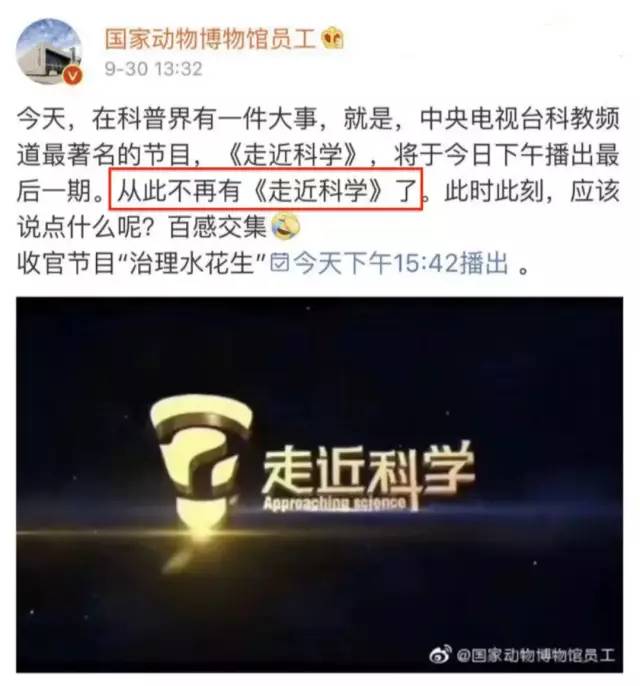 而如今,就在大家沉浸在国庆的狂欢里,晕头转向的时候,《走近科学》宣布停播了!
