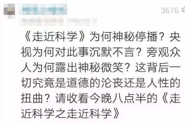 节目停播的消息传出后,评论区被“走近科学体”攻陷了。