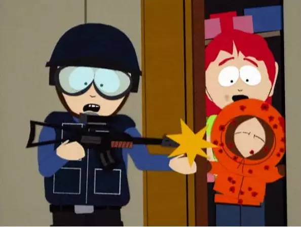 自打南方公园一开播,kenny的死就成为了一个经典的梗,每集必死,死得还特别惨烈。