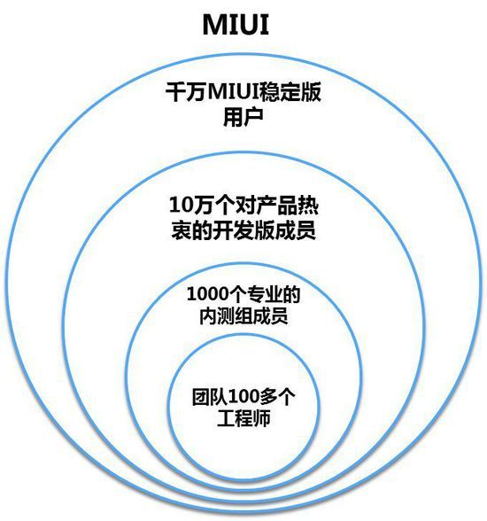 MIUI有四层用户,从工程师到内测组到会员到普通用户,在小米或者MIUI之初,内测组成员因为人数少可以直达小米公司,参与感爆棚,但随着用户群的扩大,开发版成员特别是稳定版用户几乎没有任何参与感。