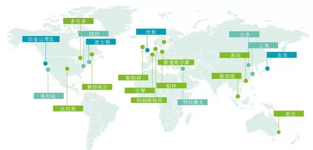 根据全球城市在上述五项指标中的评估表现, 德勤评选出最具代表性的三大类共计20个全球AI创新融合应用城市: