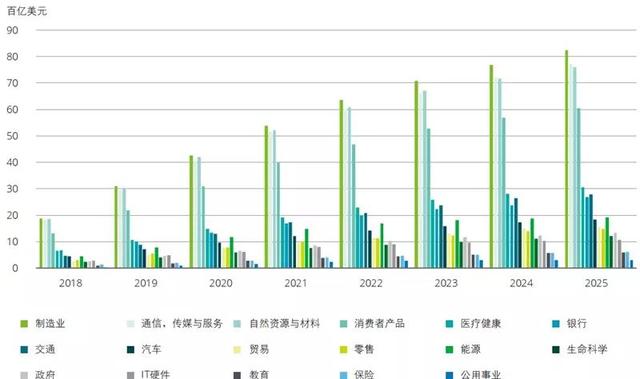 制造业将成为人工智能应用蓝海。全球人工智能及相关场景在制造业应用市场在2016年约为1.2千亿美元, 这个数字在2025年有望超过7.2千亿美元, 复合年均增长率预计可超过25%。