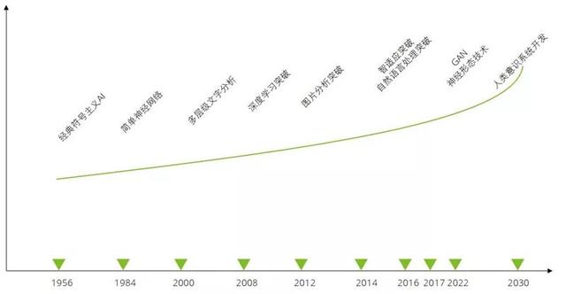 第三个阶段是20世纪90年代以后, 1993年到2011年, 随着计算力和数据量的大幅度提升, 人工智能技术获得进一步优化; 至今, 数据量、 计算力的大幅度提升, 帮助人工智能在机器学习, 特别是神经网络主导的深度学习领域得到了极大的突破。 基于深度神经网络技术的发展, 才逐渐步入快速发展期。