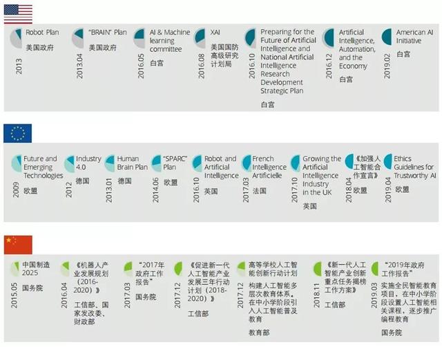 人工智能对社会和经济影响的日益凸显, 各国政府也先后出台了对人工智能发展的政策, 并将其上升到国家战略的高度。截至目前, 包括美国、 中国和欧盟在内的多国和地区颁布了国家层面的人工智能发展政策。