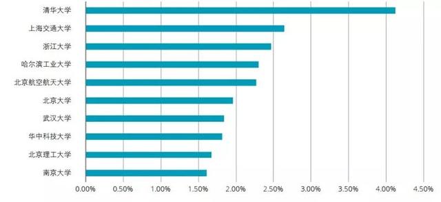 科研院校与机构实力差异明显:北京实力雄厚, 上海依靠高校, 深圳依靠企业, 杭州相对单一。科研院校与机构是人工智能技术研发的重要场所。中国人工智能论文数量自2014年超过美国, 并且远超其他国家,这与人工智能科研院校与机构的快速发展密不可分, 同时, 科研院校与机构也是人工智能专利申请的主要力量。因而, 分析各城市人工智能科研院校与机构能够帮助了解该城市的技术力量。