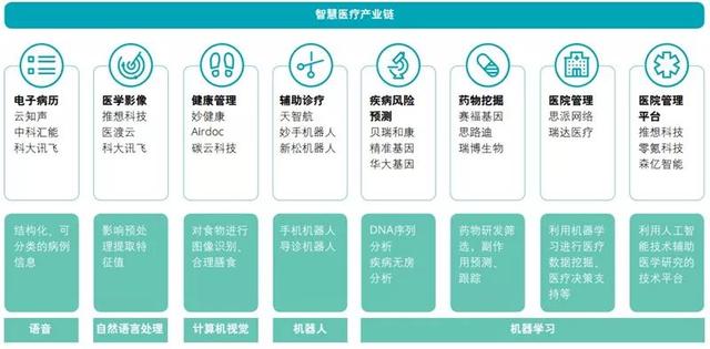 在医疗领域, 在人口老龄化、 慢性病患者群体增加、 优质医疗资源紧缺、 公共医疗费用攀升的社会环境下, 医疗人工智能的应用为当下的医疗领域带来了新的发展方向和动力。随着人工智能技术在医疗领域的持续发展和应用落地, 这个行业将极大简化当前繁琐的看病流程, 并在优化医疗资源、 改善医疗技术等多个方面为人类提供更好的解决方案。医疗人工智能技术已基本覆盖医疗、 医药、 医保、 医院这四大医疗产业链环节。