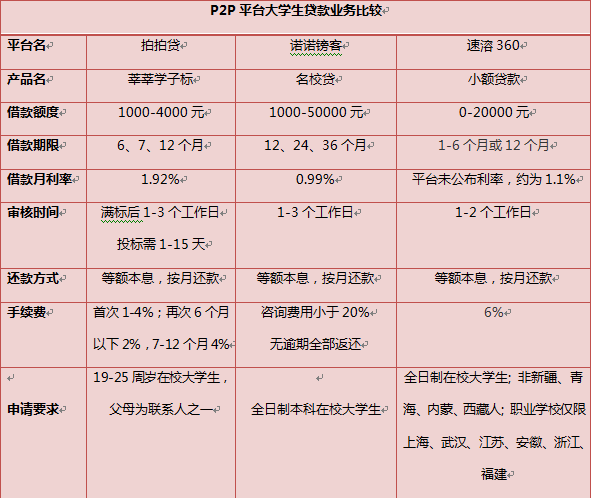 虽然许多大型P2P平台不好大学生消费贷这口,但中小型P2P却爱得火热,如诺诺镑客的名校贷、速溶P2P的小额贷款等。