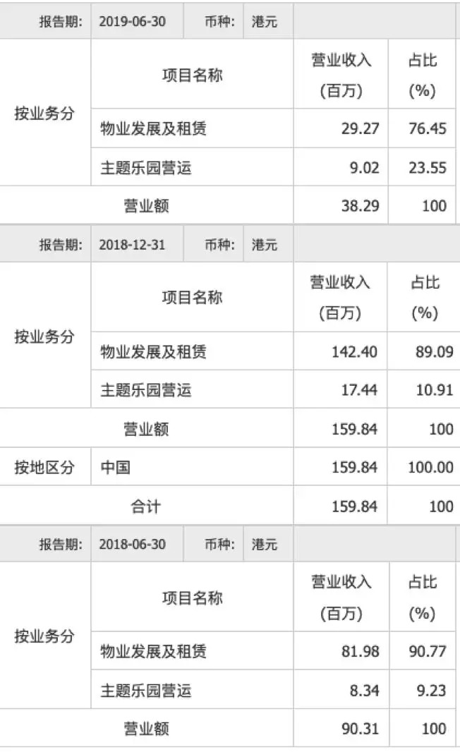但是根据数据显示,2018年6月30日—2019年6月30日,三个报告期主题乐园营运收入与物业发展及租赁收入相差甚远,最近两个报告期还出现下降趋势。IP反哺主题乐园的效果如何有待观察。