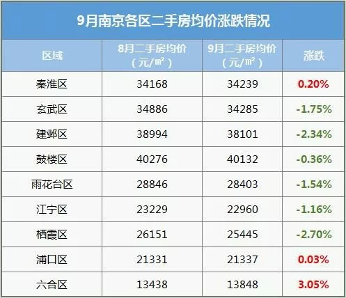 9月南京9个行政区的二手房均价实现3涨6跌,其中秦淮区、浦口区和六合区二手房价格有所上涨,尤以六合区为甚,二手房均价环比上涨3.05%,较8月惨淡的境况相比则是打了一个漂亮的翻身仗。