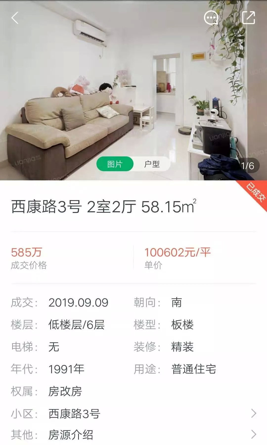 最近主城有一老破小小区一套房源以高价成交,据链家上显示,9月9日,西康路3号一套户型面积为58.15㎡的房源以总价585万成交,成交单价100602元/㎡。成交单价创该小区新高。