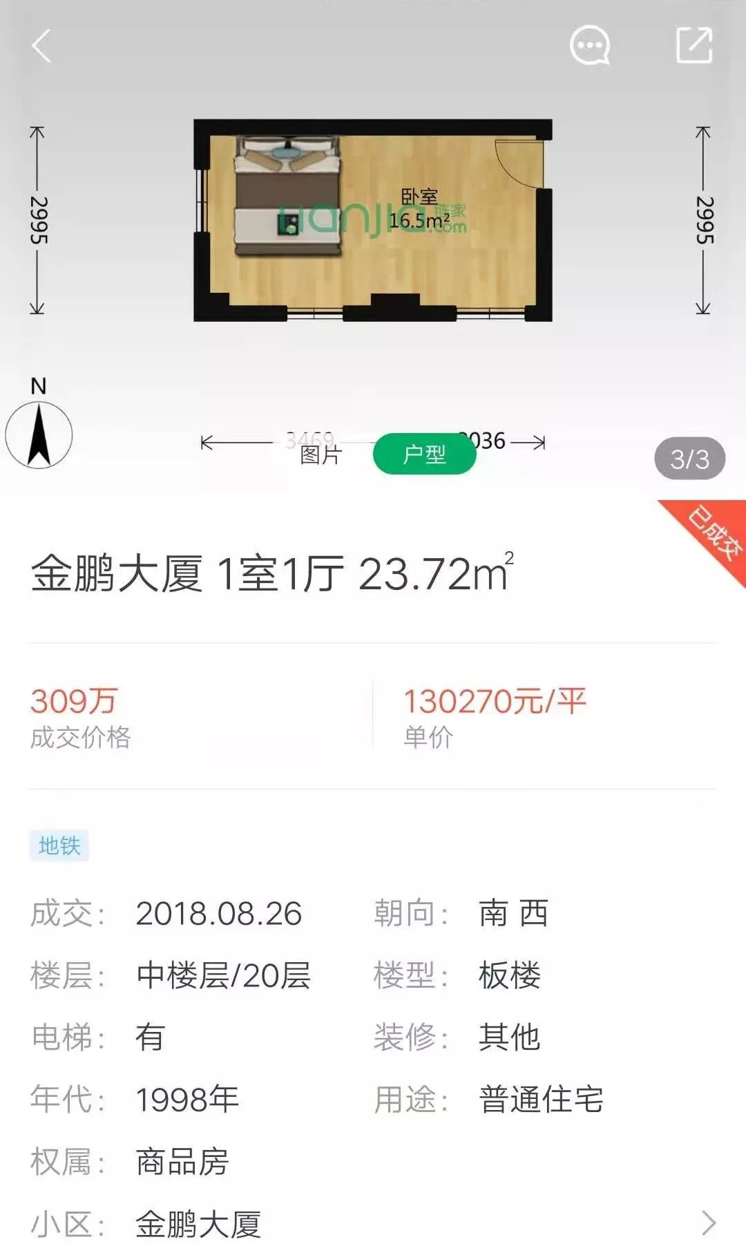 无独有偶,同样得益于拉小+29中双重配置的金鹏大厦在此前的一笔成交中,一套房源价格也创下新高,据了解,在去年8月底,一套户型面积为23.72平的房源以总价309万成交,成交单价130270元/㎡。而当前该小区在链家上的二手房挂牌均价在71100元/㎡左右。