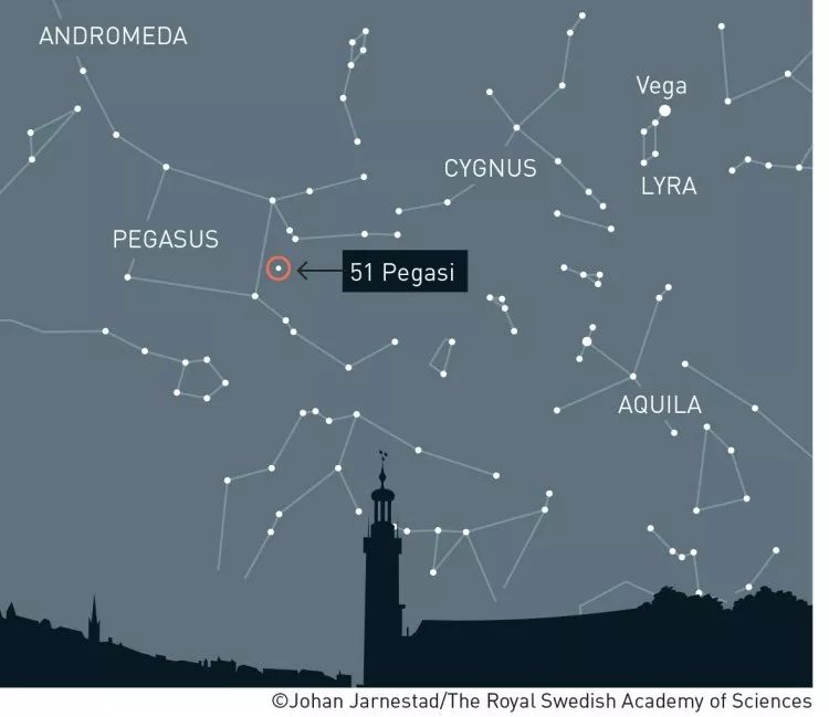 这颗行星的质量下限差不多是地球的 150 倍,表面有大气,整体呈红热状态。最重要的是飞马座 51b 所环绕的恒星与太阳非常相似:大小相近而且正值壮年。