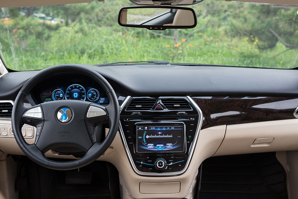 坐进车内,虽然腾势的用料其实都还算可以,比如柔软的搪塑材质覆盖了前面的仪表盘,而触手可及之处也是皮革材质,真皮座椅舒适度也不错,可是给人的整体设计比较老套,显得和电动车这种极具未来感的车型有点格格不入。