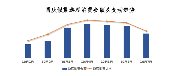 从国庆七天小长假的日旅游消费看,游客旅游消费金额及人次逐步走高,于假期第四天迎来高峰。