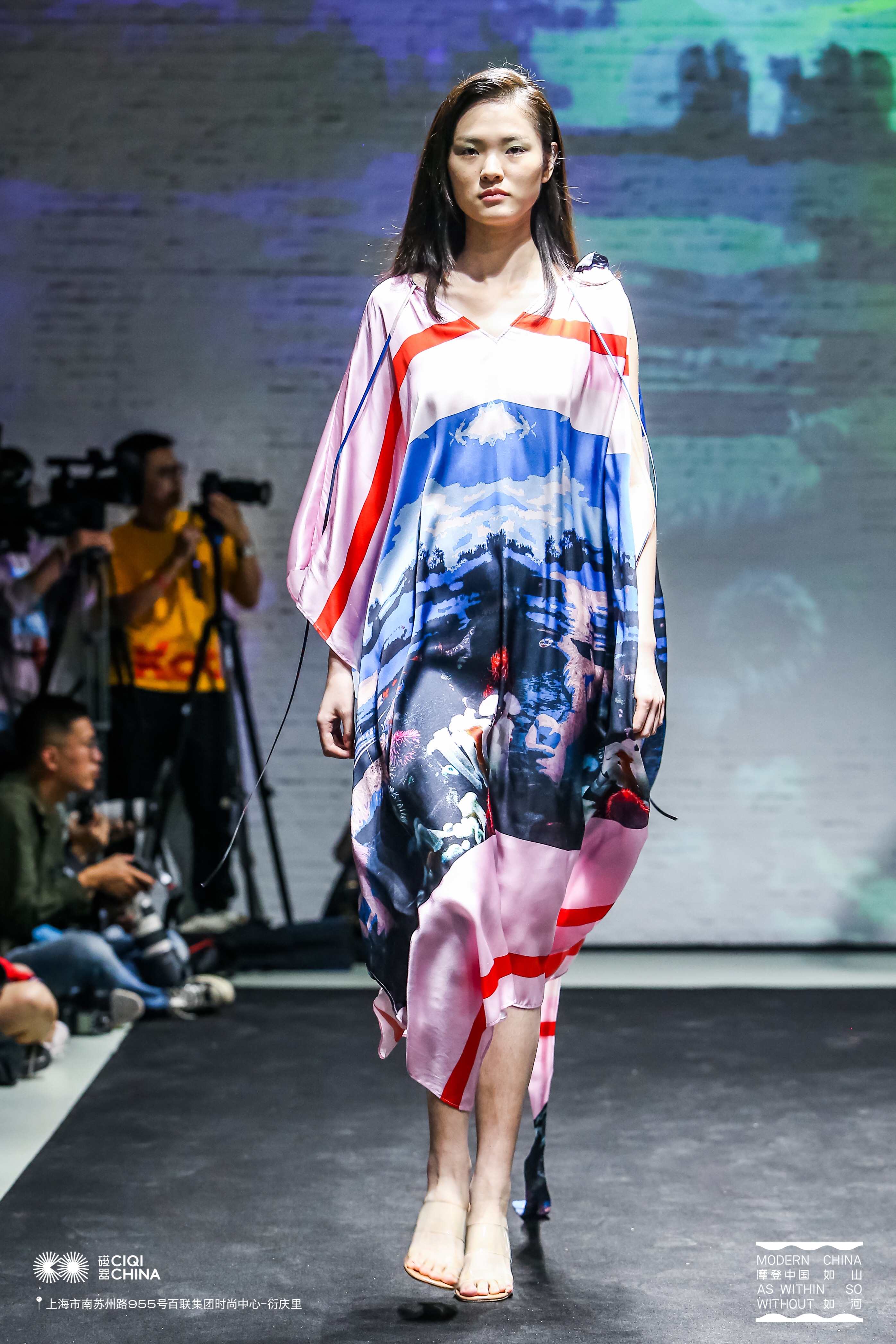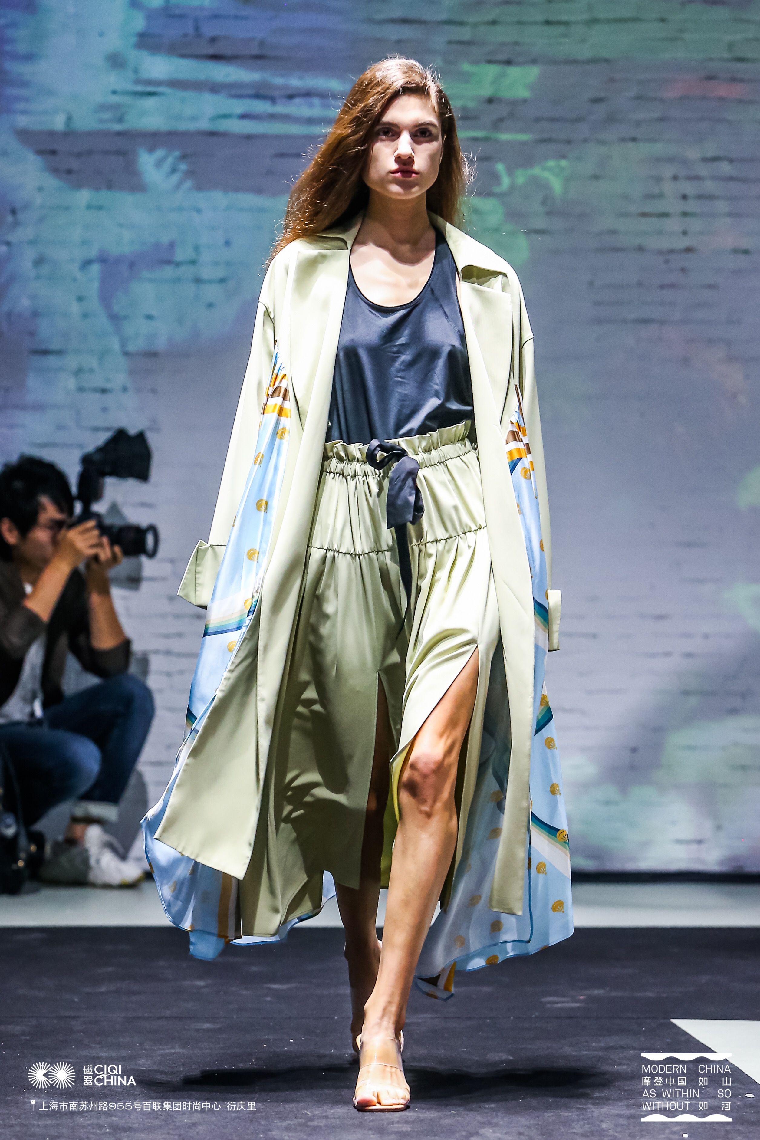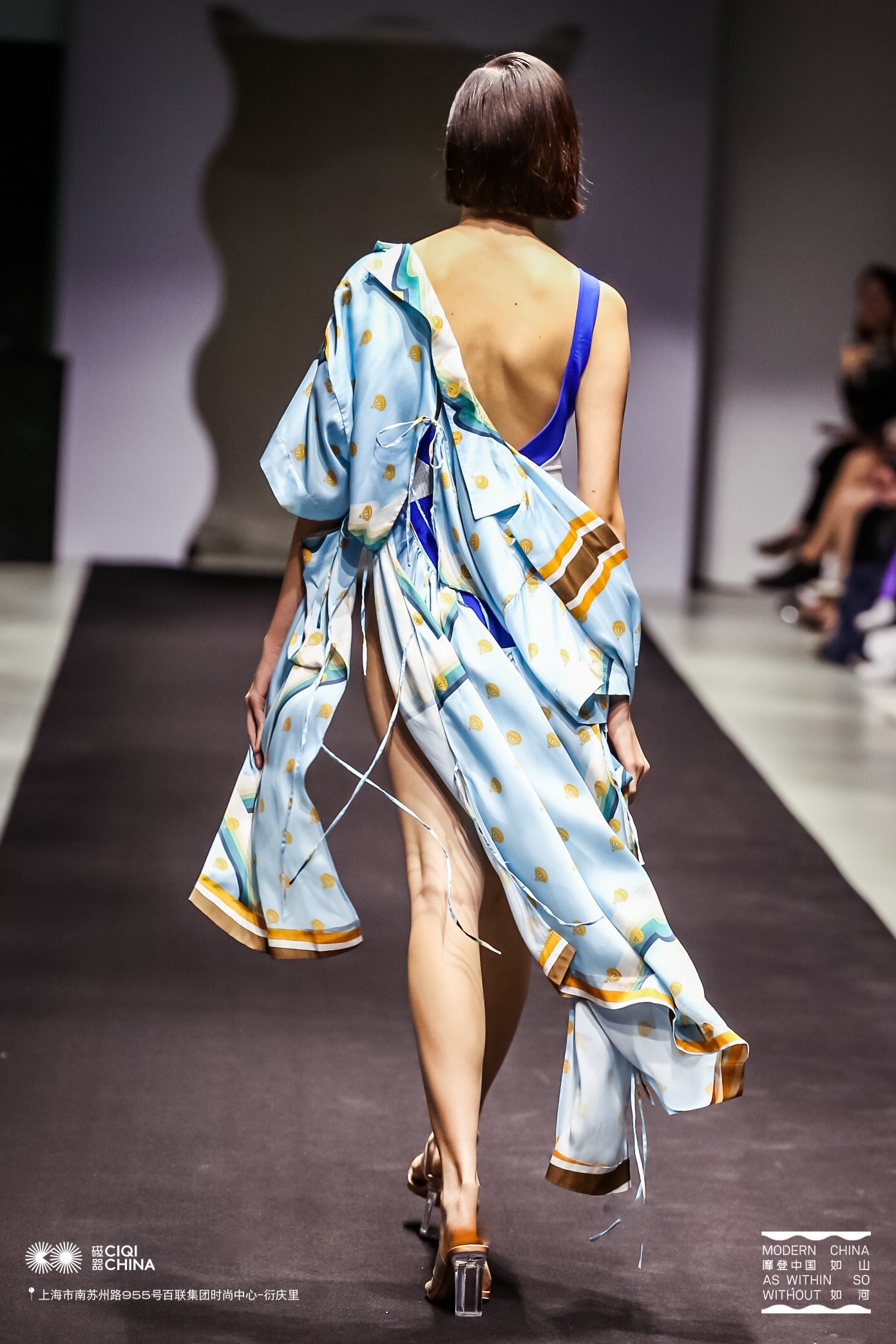 这一季,FAKENATOO处处可见宽松的剪裁,局部收腰与垂坠的设计,还有压褶层叠的处理手法,以呈现波浪、海岸线与沙滩。并且,还用到了印度的面料,模特佩戴的热气球胸针也是来自采用印度手工制作。印度曾经是全球的纺织中心,掌握着手工纺织技术的秘密,直到被英国人用纺纱机击破这种技术的高墙。