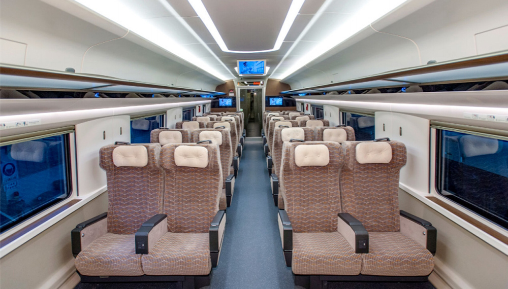 目前复兴号动车组一等座椅采用2+2座椅布置形式,二等座椅采用2+3座椅布置形式。界面新闻注意到,《方案》要求所有设计需在保持或有效利用空间、增加动车组定员的前提下进行,但并未提出对一、二等座椅的间距进行调整。