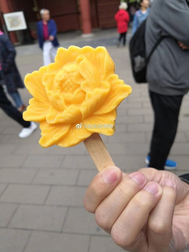 有博主@吃肉狂魔豆芽酱还在微博发起了一项#古风雪糕大赏#的挑战,鼓励网友们晒出在各大景区买到的独特造型雪糕。事实上不只是故宫,在全国各大景区,售卖有景区特色的“文创雪糕”近年来逐渐流行,比如不少游客曾经有在迪士尼乐园买上一支“米奇头”造型雪糕,不是急着吃,而是先拍照打卡的经历。