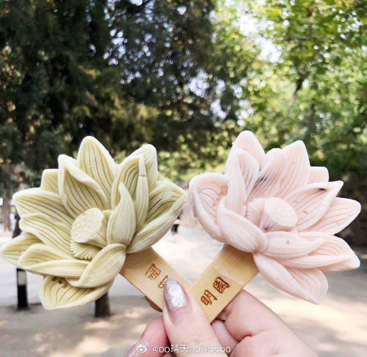 而除了故宫之外,更多具有传统文化特色的景区也加入了,比如北京的圆明园、景山公园、玉渊潭公园,甚至长城。造型上花费了一番心思,比如圆明园的荷花雪糕,景山公园的牡丹花雪糕,玉渊潭的樱花雪糕——你可以边在时令的赏花季边吃边拍照;而长城雪糕的造型在萌中透出一股“星球大战”般的硬核气质。