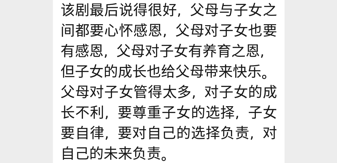 最近,我爸给我发来《小欢喜》的观后感: