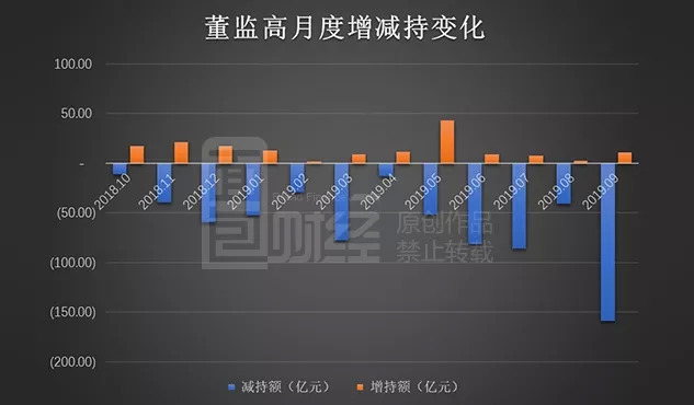 根据公开的信披数据统计:2019年9月,沪深两市上市公司董监高及其关联人减持金额合计约159.27亿元,涉及441家公司;增持金额合计约10.80亿元,涉及100家公司。增减持金额相抵之后,净减持金额148.47亿元。