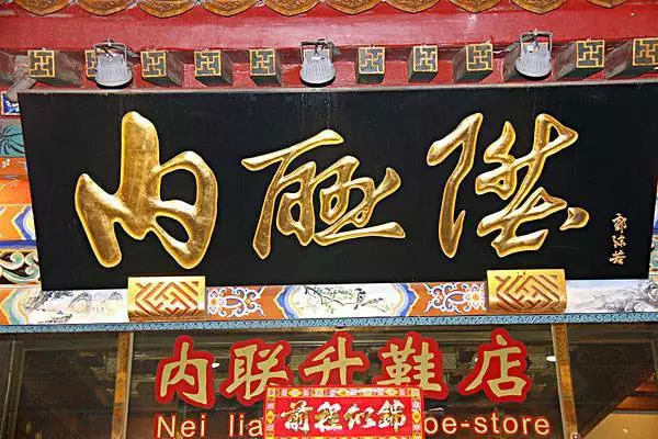 当时京城文武百官买鞋必到内联升,来京官员送礼或自用也会到内联升选购朝靴,甚至溥仪在太和殿登基时穿的龙靴,也是内联升做好后送到内务府的。
