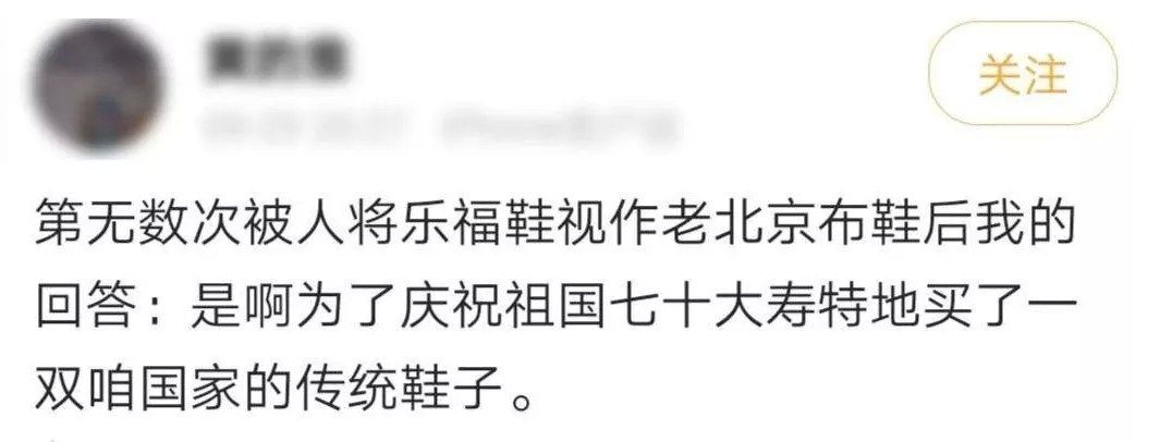 吃完饭玩虫遛弯打太极,拿着几万块钱的镜头到奥森公园拍鸟,没双布鞋怎么能施展得开。而到了晚上,它又成了大爷们的“宝马战靴”。喇叭里播着最潮的歌,北京大爷一双黑布鞋,牵着朝阳大妈的手,随着音乐“左边儿跟我一起画个龙,在你右边儿画一道彩虹”~