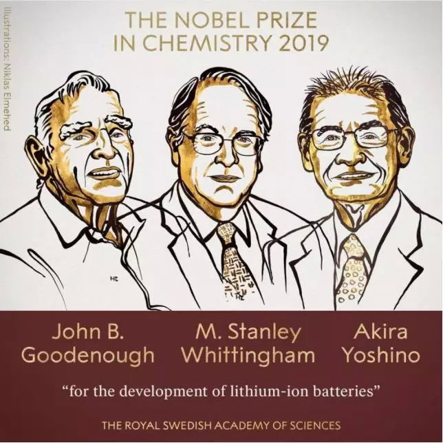 2019年10月9日,瑞典皇家科学院在斯德摩尔摩宣布,将本年度的诺贝尔化学奖授予美国固体物理学家约翰·巴尼斯特·古迪纳夫(John B. Goodenough),英国化学家斯坦利·威廷汉(Stanley Whittingham)和日本化学家吉野彰(Akira Yoshino),以表彰他们在开发锂离子电池方面作出的杰出贡献,三位科学家将平分诺贝尔化学奖奖金。