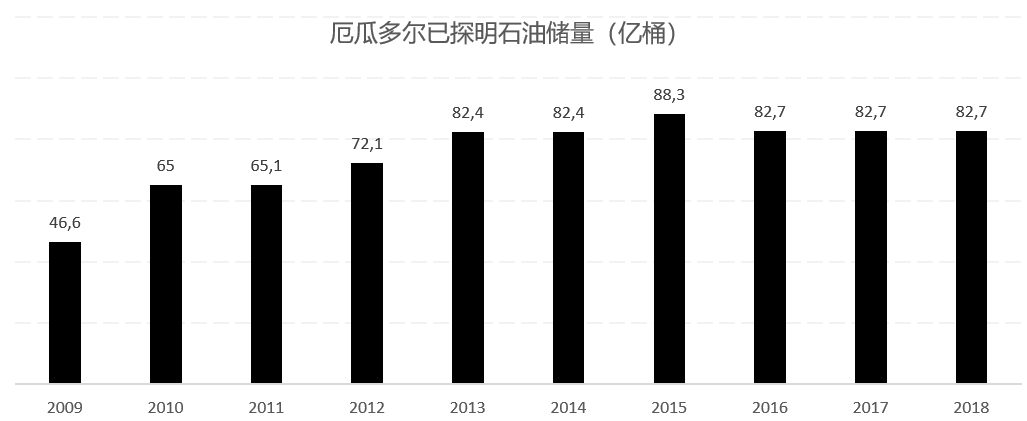 由于石油勘探需要油服企业、超级计算机等大量专业人才、资金和设备支持,加之厄瓜多尔不佳的投资环境使得国际石油巨头退避三舍,该国的石油勘探工作从2013年起就陷入半停顿状态,其探明石油储量也停滞不前。唯一的增量来自于位于亚马孙盆地的ITT区块,但该地区的勘探活动不仅受到环保问题的制约,更是引起了原住民的不满。