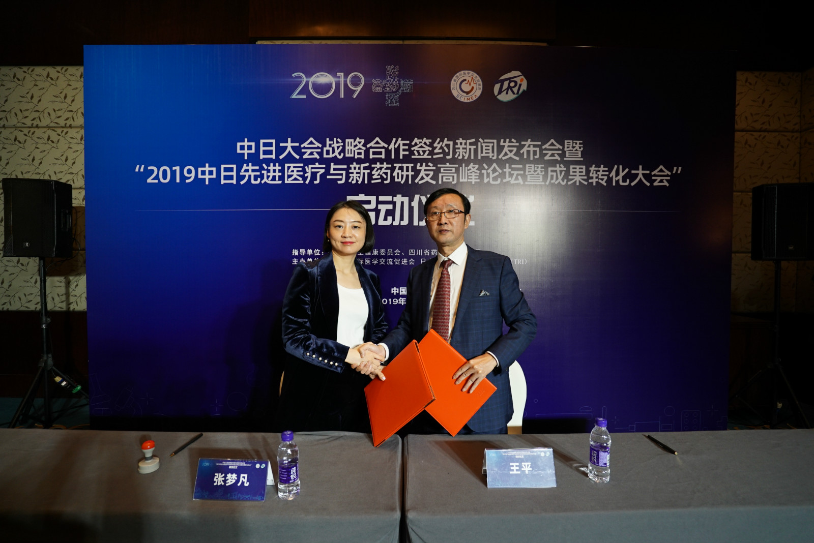 2019年10月11日,四川省国际医学交流促进会(以下简称“医促会”)与日本神户转化医学研究中心(TRI)、思尼特生物科技有限公司战略合作签约新闻发布会暨“2019中日先进医疗与新药研发高峰论坛暨成果转化大会”启动仪式在成都香格里拉大酒店正式举办。四川省国际医学交流促进会秘书长张梦凡女士、日本神户转化医学研究中心中国区域代表、思尼特生物科技有限公司总经理刘苗苗女士、界面(财经新媒体)四川总裁王平、博普智库总经理黄霄等出席了会议。