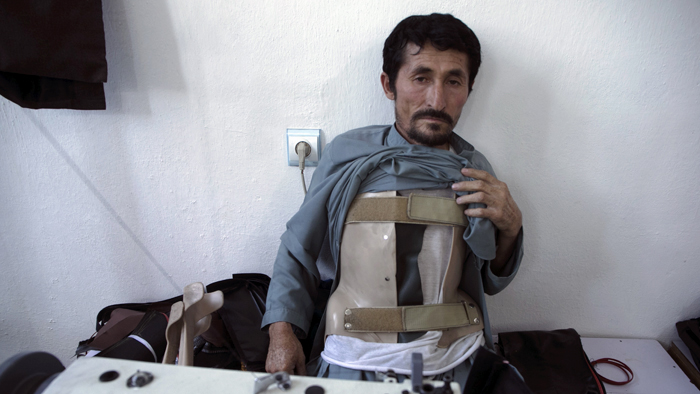 这名50岁的工人之前在抵抗塔利班时受了伤。