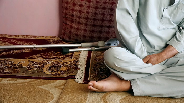 1993年正值阿富汗内战,这名工人坐在家里,被一枚火箭弹炸伤。