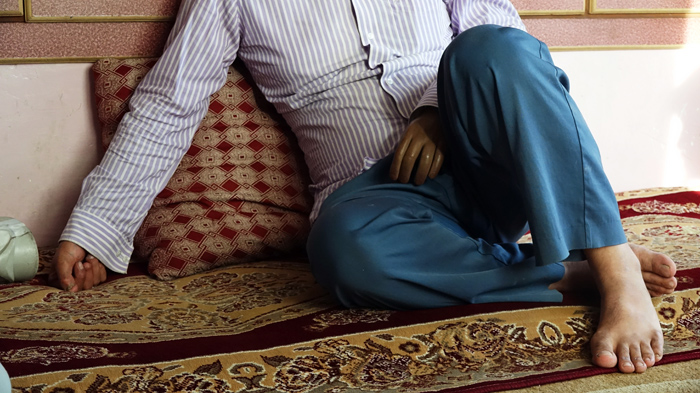50岁的阿里先生是就业中心的负责人。他是哈扎拉人,也是阿富汗安全部队的一名老兵。在伏击拦截一辆向伊朗运输海洛因的卡车时,他踩到了地雷,左腿至大腿根部没有了,只好长期吃止疼片。