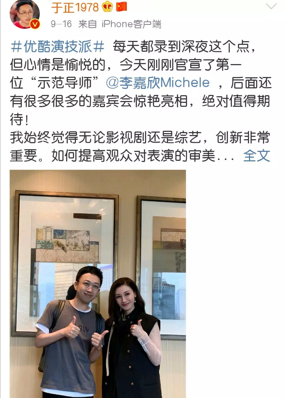 话题制造好手于正在9月初以一番演员演不好是导演问题的言论就已经引发一阵讨论。没过几天又一条“中秋我跟真正的嫦娥过”的微博充分预热,两天后揭晓“顶级女神”是久未露面的李嘉欣。凭借网友对于复出参加演技综艺的大美人李嘉欣演技的争议,顺利让《演技派》话题讨论不断。