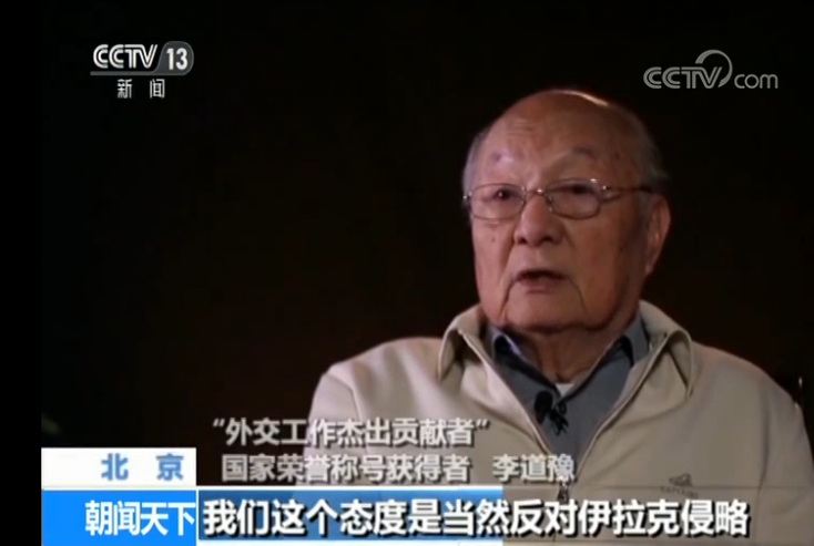 “外交工作杰出贡献者”国家荣誉称号获得者 李道豫:我们这个态度是当然反对伊拉克侵略,支持科威特。我们跟美国人是不一样的,我们是既要维护科威特的主权,但是也认为对伊拉克的制裁,也不应该侵犯到伊拉克的主权,特别是损害到伊拉克人民的生活。