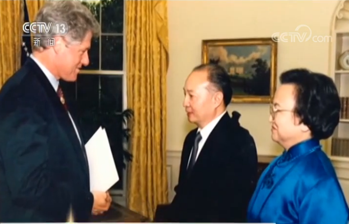 “外交工作杰出贡献者”国家荣誉称号获得者 李道豫:美国的工商界当时在美国是根本反对克林顿政府拿待遇来做人质的,所以就给克林顿政府施加压力。最后美国几次(派)克里斯托弗到中国来,我们都给他严正驳回去。两头都使劲的情况下,克林顿政府到了1994年5月不得不取消了他这个命令。