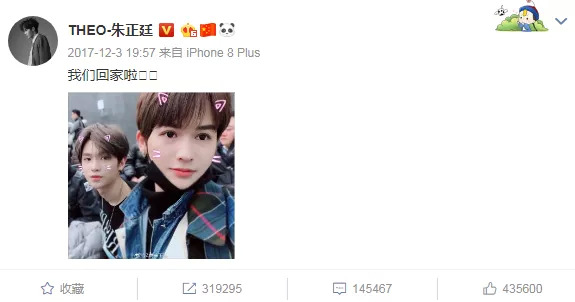 2017年12月3号,乐华练习生回国的时候,我就开始追了。当时看到机场图,一眼看脸入坑朱正廷,在《偶练》播出前的空档补了《Produce 101》第二季,《偶练》播出后就一直在给他投票了。