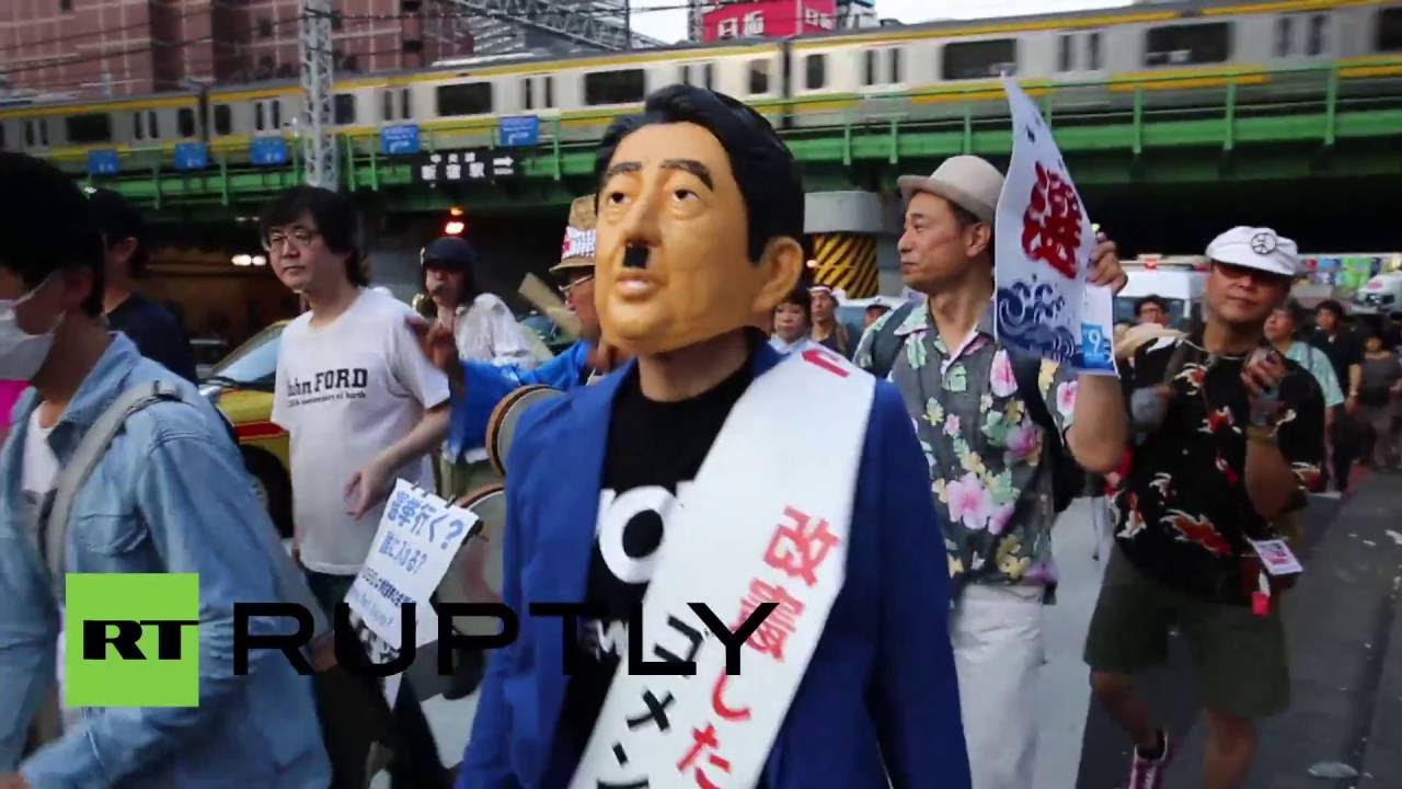 即使在政府中,安倍也面临一系列抗议——反对重启核反应堆,反对日本在海外部署兵力的计划,反对阴险的新国家保密法。我追踪了这些示威活动,并与示威者交流,其中令我印象深刻的是,一直听得到对安倍的强烈反对。这不仅仅是因为他狂热的民族主义倾向,他性格中的某种东西也激起了示威者个人深深的厌恶。他们都认为他是大企业和强力核工业的走狗,一个最终可能让日本重返战争的军国主义者。日本人不轻易谩骂他人,甚至面对政治家也是如此。但很多示威口号却称其为法西斯主义者,在一些海报上,安倍还被画上了阿道夫·希特勒式的胡子。