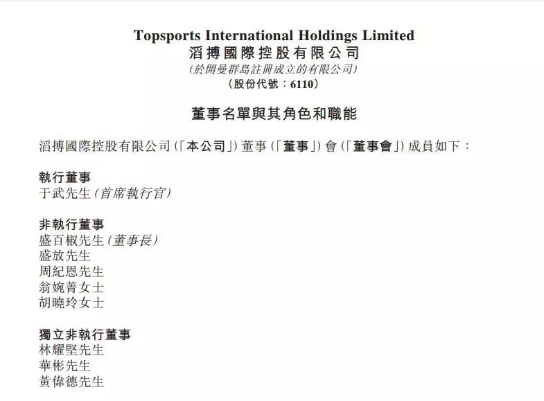 滔搏国际董事名单中,执行董事兼首席执行官于武,今年52岁,负责集团整体策略规划和业务管理。67岁的百丽国际创始合伙人盛百椒,出任滔搏国际董事长兼非执行董事;盛百椒的侄子盛放,今年46岁,任非执行董事。