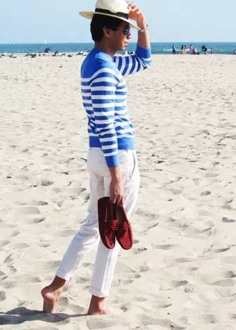 麂皮开车鞋简直就是为夏天而生,它能将你的脚从桑拿房里拯救出来!或许称之为豆豆鞋更方便大家区分。有人爱它爱到发狂,有人至死不越雷池一步。无论是学院风还是雅痞范儿,悠闲轻松与慵懒随性都成了其搭配的最大风格主导。掌握好船鞋的搭配法则,再加入点个人特色,豆豆鞋也能穿出别样味道。