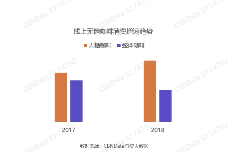 线上无糖咖啡的消费增速高于整体咖啡。图片来源:CBNData