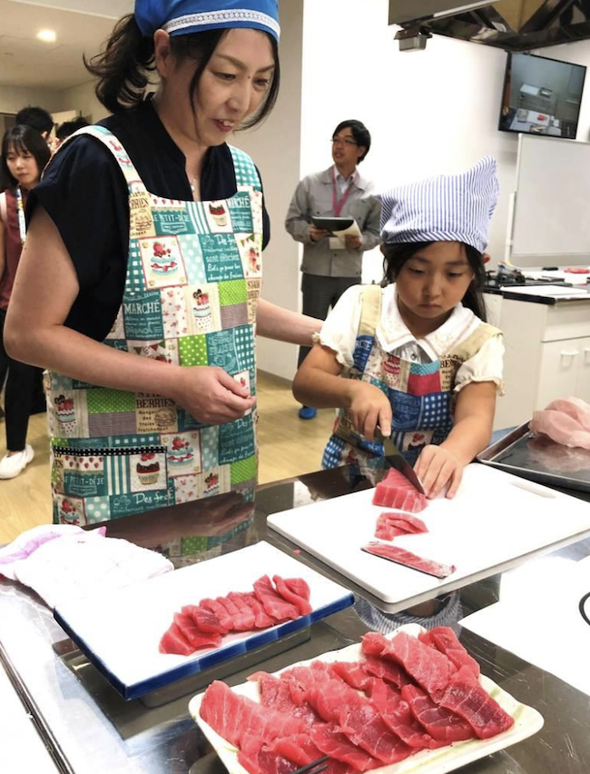 过去一年中,像这样的料理教室正在增加,比如教授人们如何处理金枪鱼不同部位的料理课、亲子料理体验课等等。