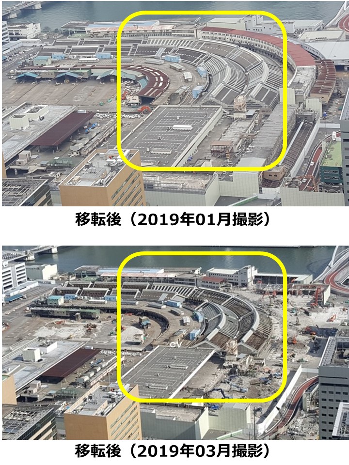 筑地市场最早是在关东大地震时烧毁的日本桥的鱼市场和京桥的蔬果市场搬迁形成的,不过此后数年逐渐面临建筑老化、用地狭小等问题,关于筑地市场的搬迁已经讨论了数年。最早东京市政府决定在2016年就将筑地市场搬迁至丰州,不过当时由于丰州地下水资源污染等问题被搁置。此后随着东京2020年奥运会的临近,筑地市场搬迁再次被提上议程,并在去年正式搬离原址。